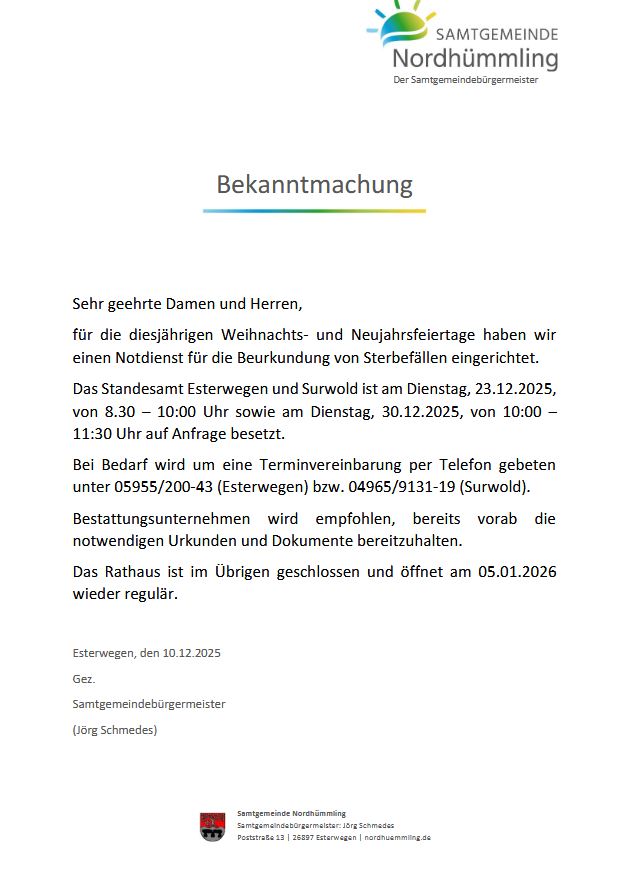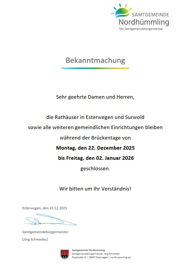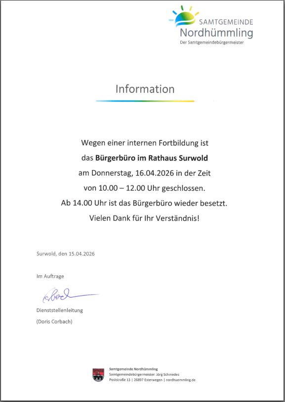 Herzlich Willkommen auf der Seite der Gemeindeverwaltung Surwold.