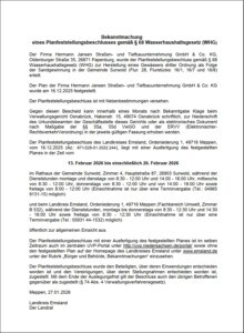 Bekanntmachung Auslegung Planfeststellungsbeschluss Daniela Rensen2026-01-28T08:54:03+01:0028.01.2026|Kommentare deaktiviert für Bekanntmachung Auslegung Planfeststellungsbeschluss Teile diesen Beitrag mit deinen Freunden! FacebookTwitterLinkedInPinterestE-Mail
