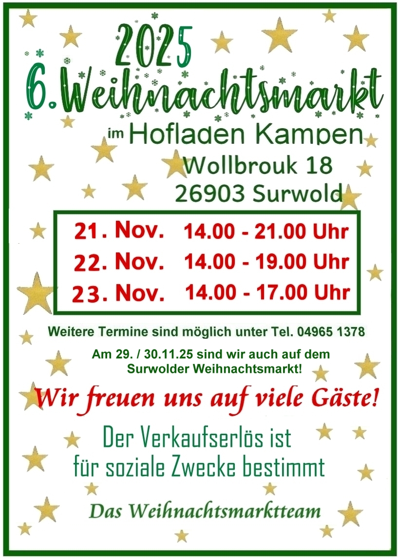 6. Weihnachtsmarkt im Hofladen Kampen vom 21.-23.11.2025